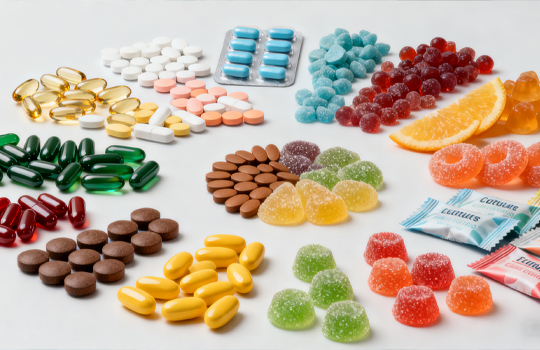 • Microencapsulated Powders: Custom-filled capsules, effervescent tablets, or powdered stick packs for beverages.